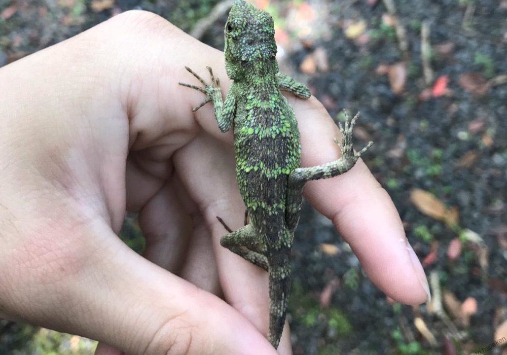 - 筆者が人生で最初に採集したアガマ科である。飼ってみたが、代謝がよくてすぐに痩せるし、縄張りをもつため、一匹に一つのケージが必要となり、世話が焼けた。 目が大きく、口の開いた間抜け面であり、表情は非常にかわいい。(日野)